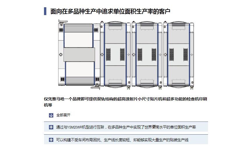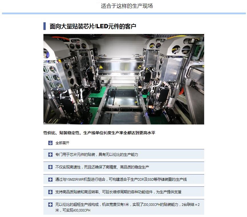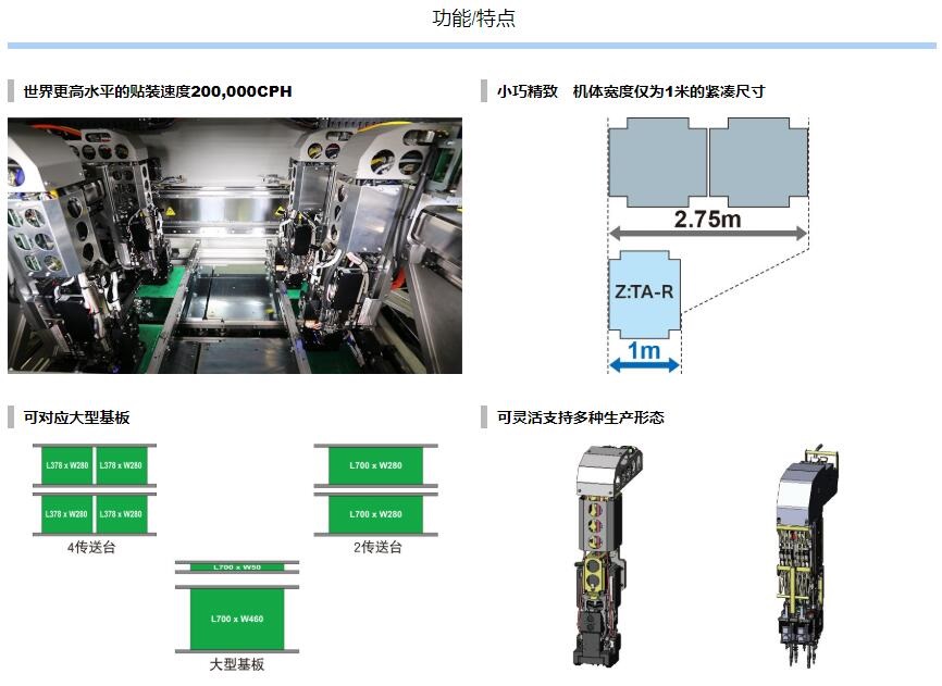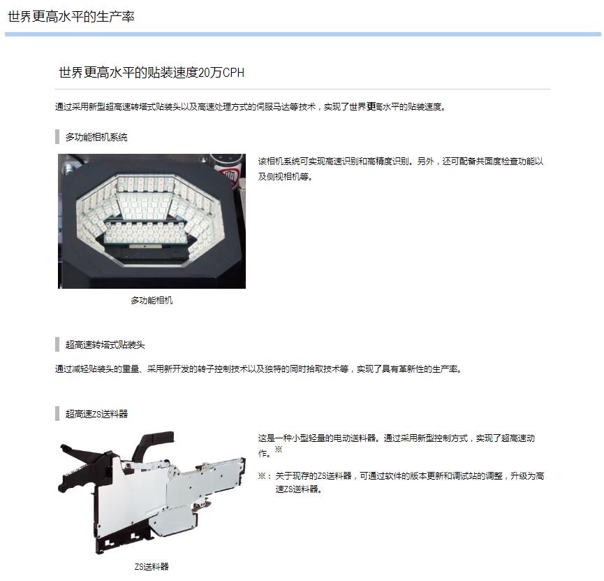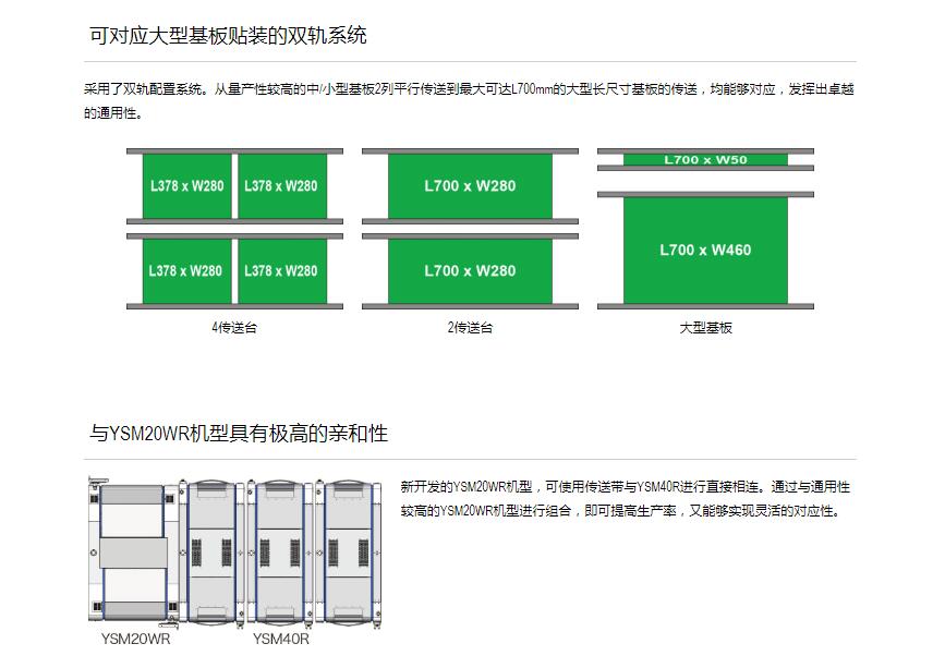 Z:TA-R YSM40R超高速模塊貼片機(jī) 1.采用小巧的平臺構(gòu)造,達(dá)成了世界更高水平的貼裝速度20萬CPH※,實(shí)現(xiàn)了生產(chǎn)率的全面革新。2.全球更高生產(chǎn)率。3.靈活支持多種生產(chǎn)形態(tài)。4.支持高品質(zhì)貼裝和高運(yùn)轉(zhuǎn)率的技術(shù)。※:與4橫梁/4貼裝頭的同級別貼片機(jī)在更佳條件下的貼裝能力(CPH)對比。基于2016年4月本公司的調(diào)查結(jié)果。