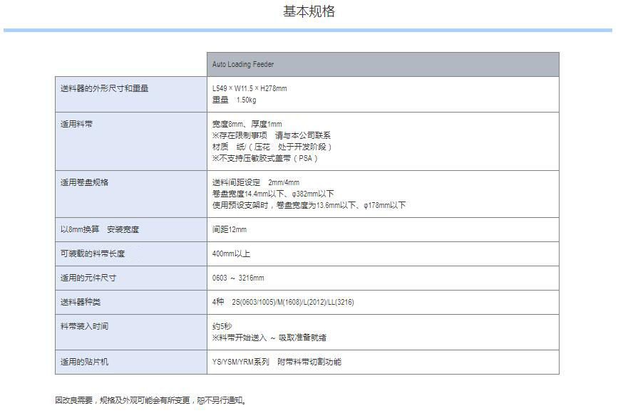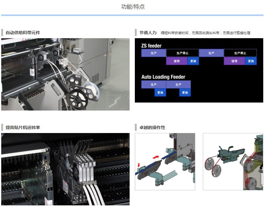 Auto Loading Feeder 1.元件供料的革新2.自動(dòng)供應(yīng)料帶元件3.卓越的操作性